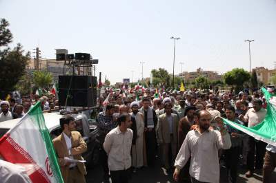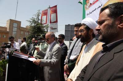 وی تاکید کرد: همچنین مردم باید تنفر، انزجار، خشم و غضب خود را از رژیم غاصب اسرائیل به همه دنیا اعلام کرده و چهره زشت این رژیم را برای همه دنیا نمایان کنند؛ زیرا این رژیم از سال 1948 مردم مظلوم فلسطین را مورد تجاوز قرار داده است.
